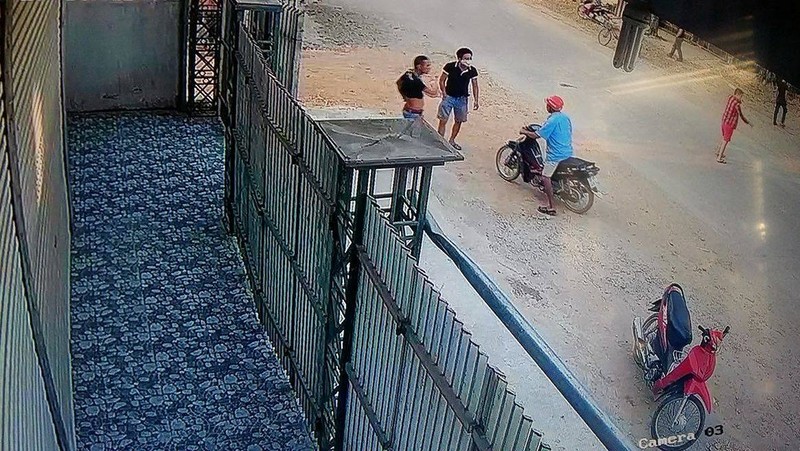 Nhóm con đồ đứng trước cổng nhà vợ chồng ông Hùng để cảnh giới.
